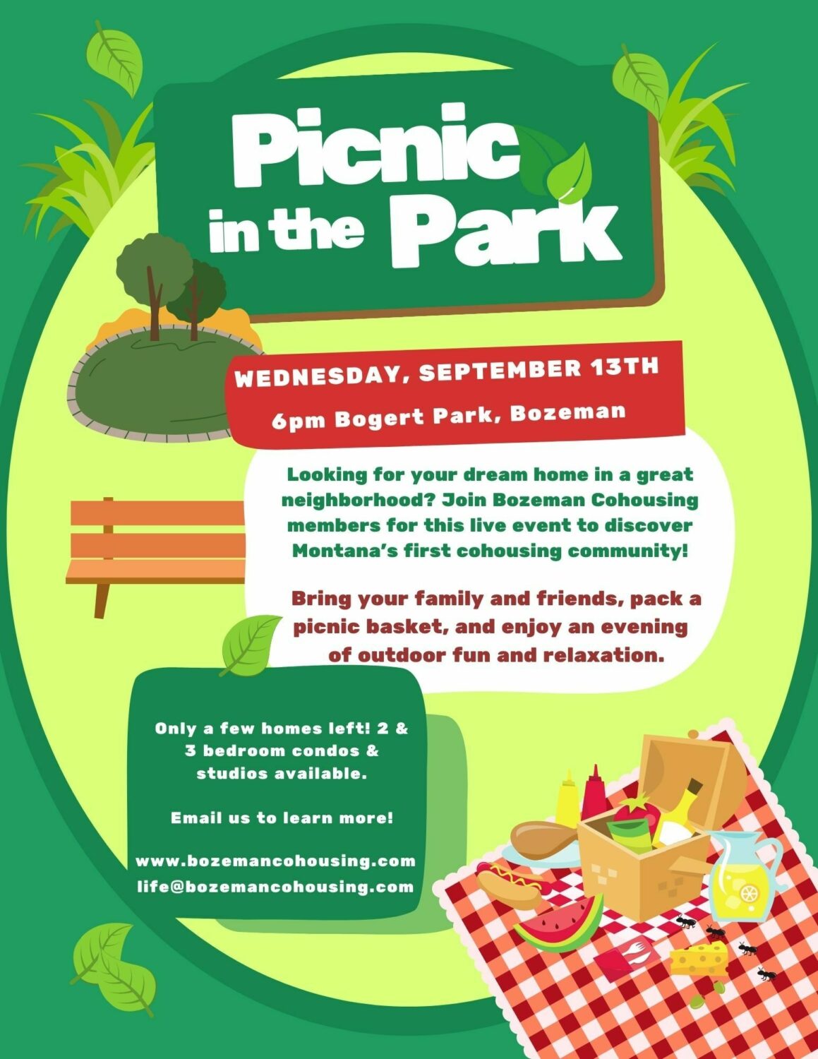 Curious about Montana’s first Cohousing community? Are you ready to purchase a home in one of Bozeman’s newest neighborhoods? Join us for a live event to learn about Bozeman Cohousing and the homes we have available. Bring your family, friends and a picnic basket for some fun and relaxation with your future neighbors. Only a few homes left!! 2 & 3 bedroom condos and studios available. Visit www.bozemancohousing.com or email us at life@bozemancohousing.com to learn more. Move in starting Fall 2023.