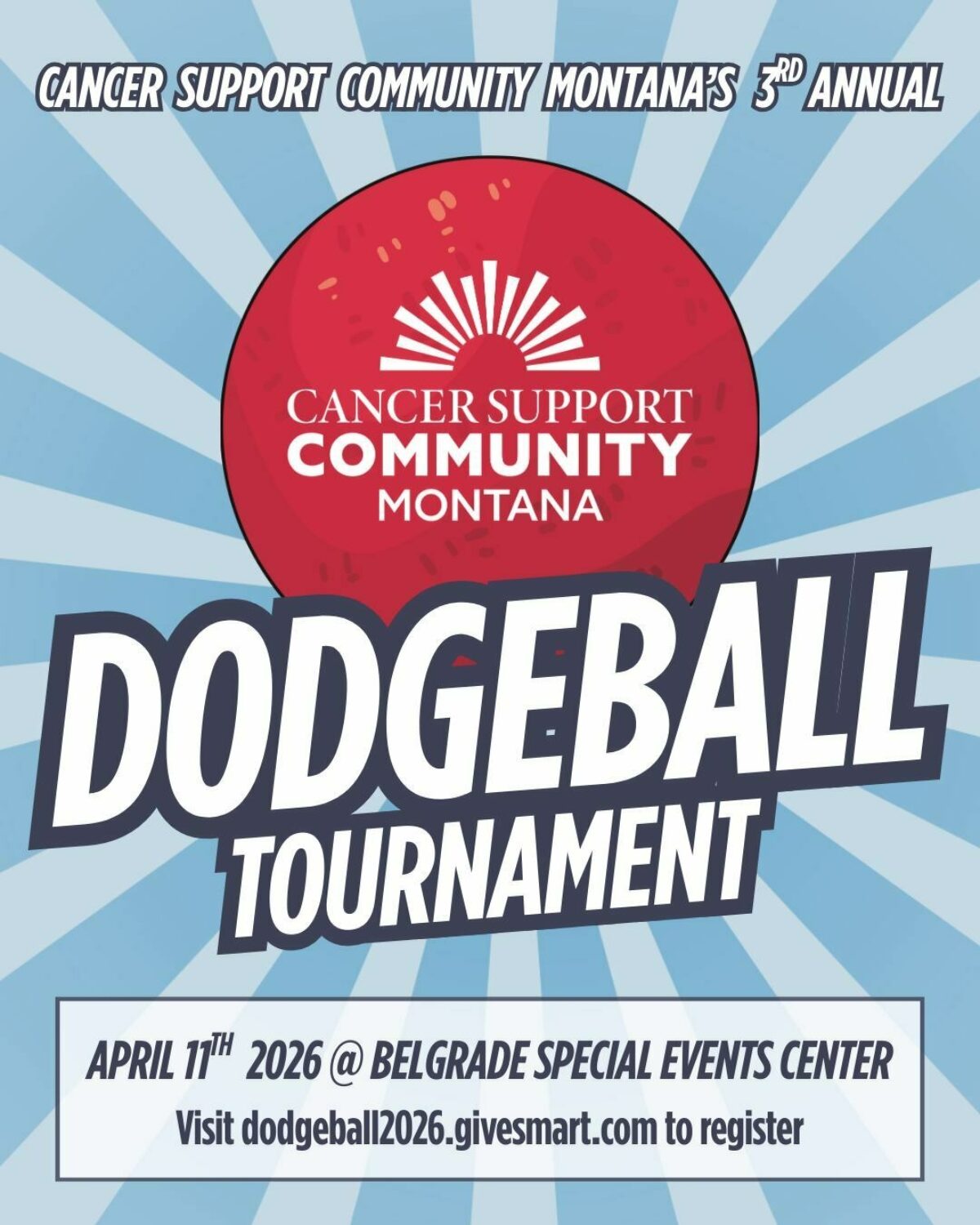 Get ready to dodge, duck, dip, dive, and dodge again! The 3rd Annual Cancer Support Community Montana Dodgeball Tournament is coming up on Saturday, April 11, 2026, at the Belgrade Special Events Center.