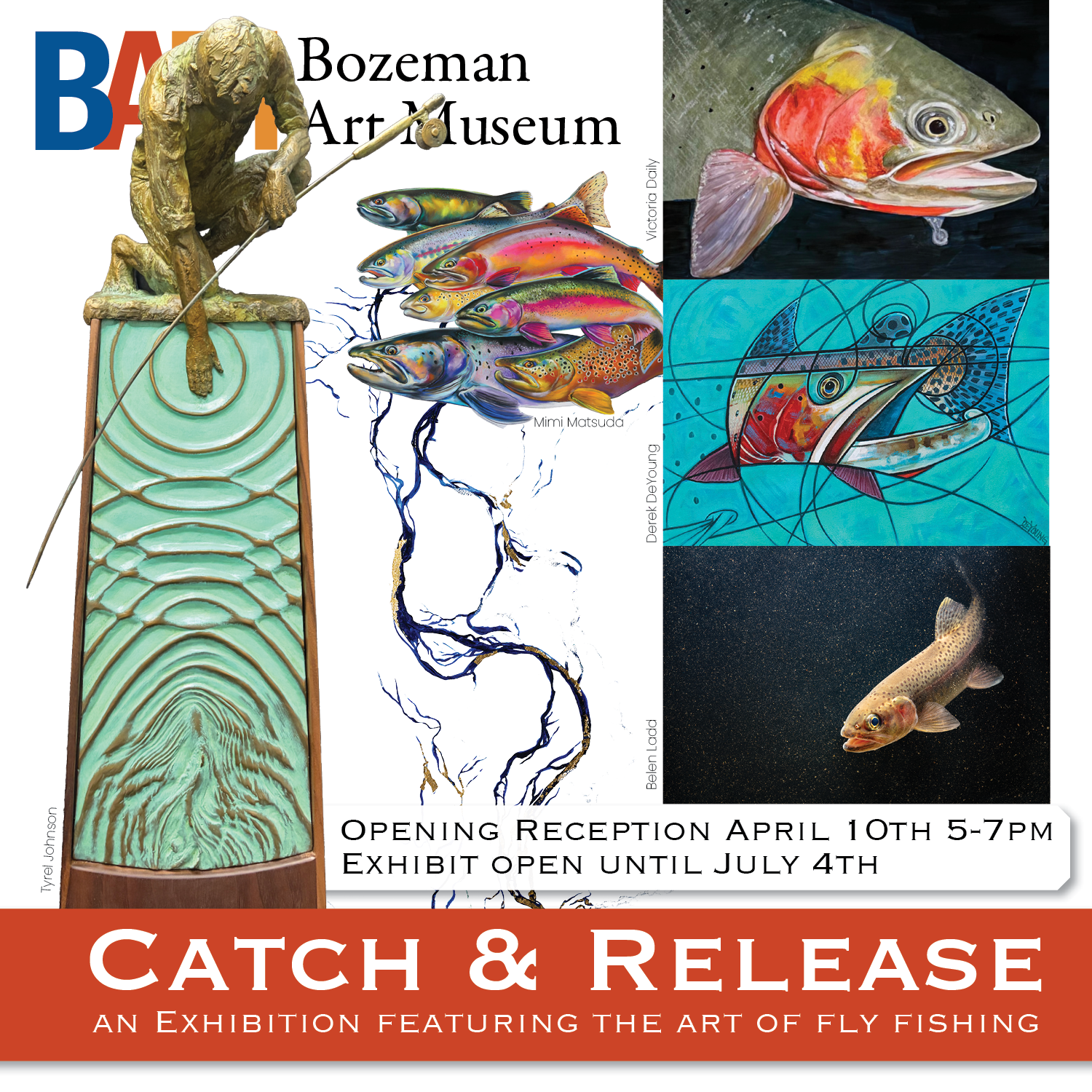 Exploring Montana’s rivers and their influence on western fine art, Catch & Release will show how we interact and appreciate the natural environment of our water, riparian plants, fish, insects, & landscapes beyond the sport of Fly Fishing.