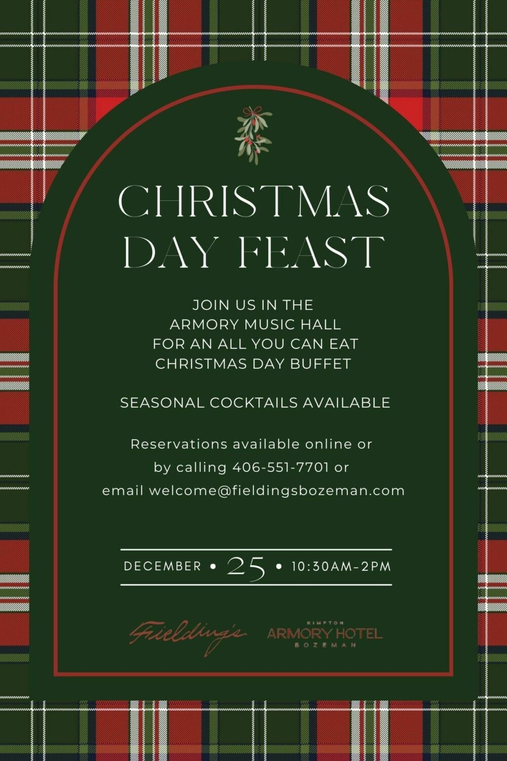Join us in the Armory Music Hall for an all you can eat Christmas Day Buffet. Seasonal Cocktails Available.