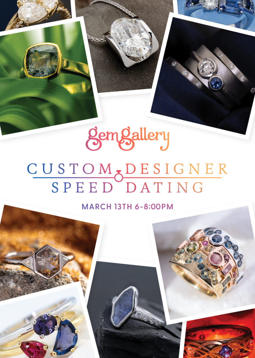 Meet with Gem Gallery’s designers & goldsmiths in rotating 20 minute sessions to design your dream jewelry. Leave with fresh ideas for a custom piece and clear next steps to bring it to life!