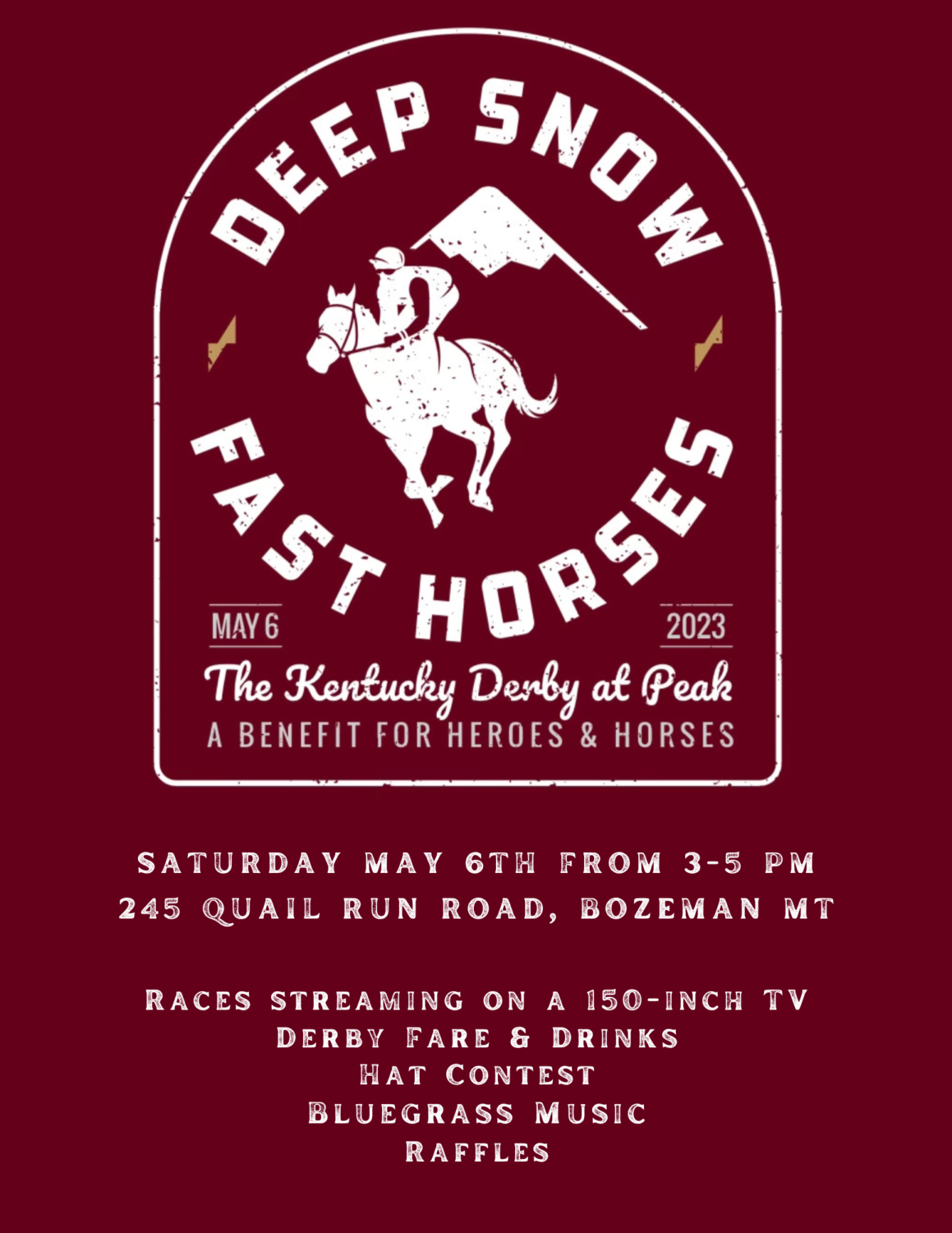 Peak Ski Company will be hosting a Kentucky Derby party to benefit Heroes and Horses. This event will include derby fare & drinks, a hat contest, raffles, bluegrass music, and a live stream of the races. Keep the spirit of "Give Big" going and stop by!
