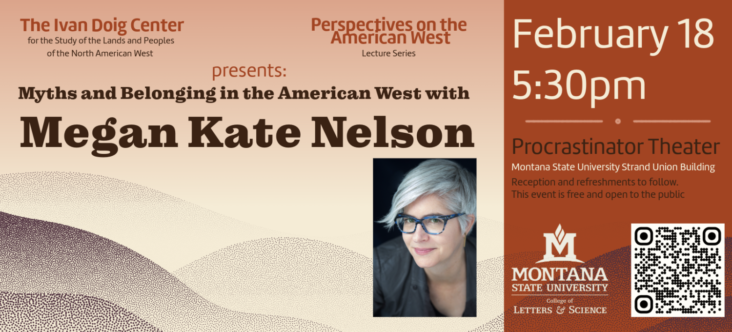 The Ivan Doig Center for the Lands and Peoples of the North American West is pleased to announce "Myths and Belonging in the American West with Megan Kate Nelson" on February 18 as part of the Doig Center's Perspectives on the American West Speaker Series. The event will take place in the Procrastinator Theater in the Strand Union Building at MSU from 5:30-8:00pm, with doors opening at 5:00pm. Light refreshments will be served.