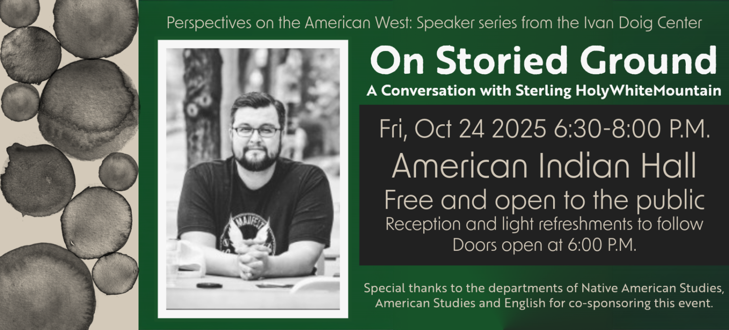 The Ivan Doig Center for the Study of the Lands and Peoples of the North American West, in partnership with Montana State University’s Native American Studies, English, and American Studies Departments, is pleased to announce author Sterling HolyWhiteMountain in conversation with Doig Center Director Daniel Grant as part of the Doig Center’s “Perspectives on the American West” speaker series.