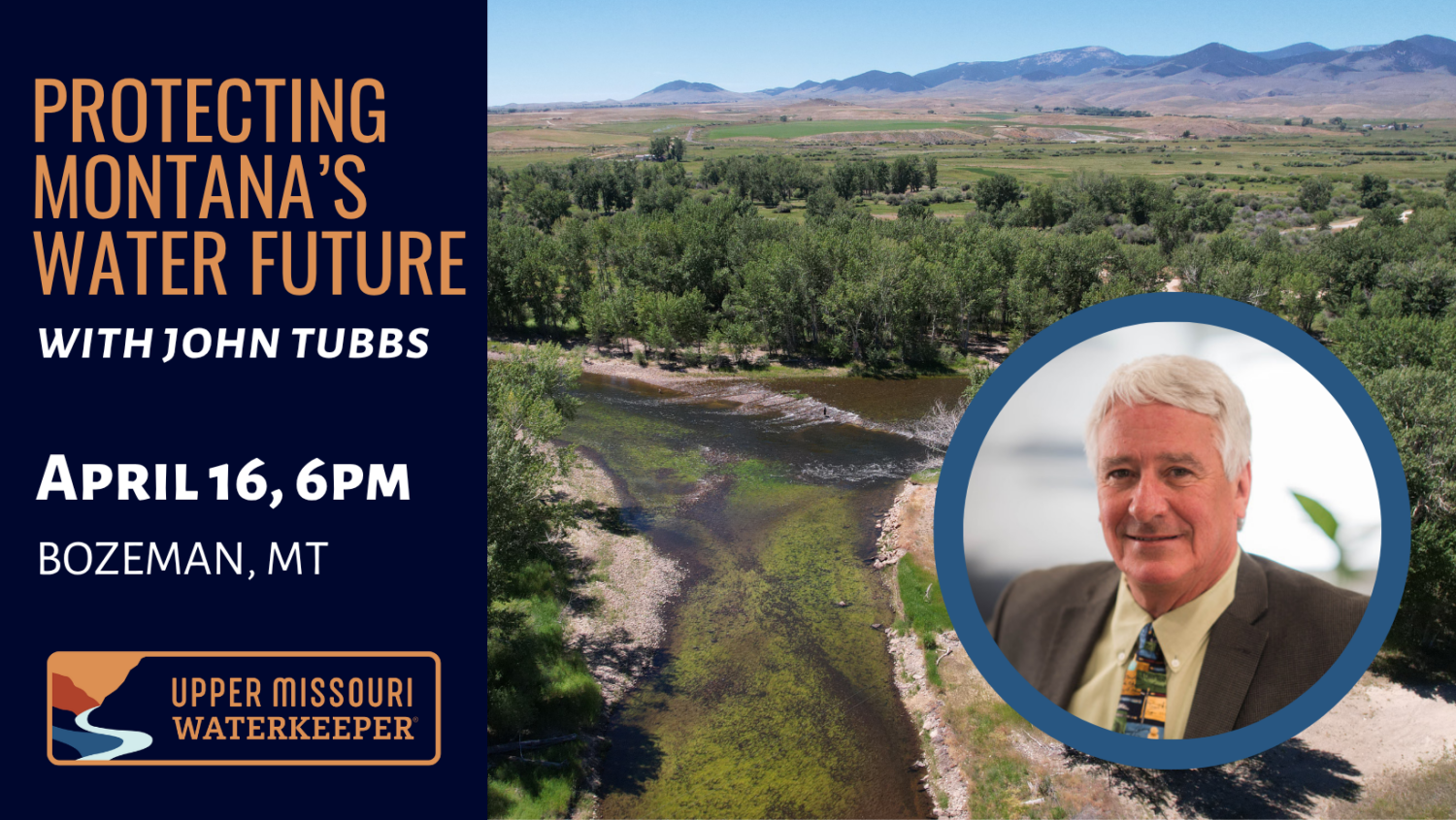 Join Upper Missouri Waterkeeper for a presentation by John Tubbs, former Director of the Montana Department of Natural Resources and Conservation, on the history of Montana’s overallocated and increasingly threatened water resources, how we got here, and what needs to be done to protect our water, way of life, and fisheries for the future.