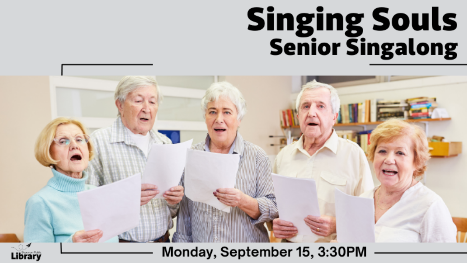 This casual and fun-filled Senior sing along, led by local singer, choir director and musician, Kate Bryan, will include familiar songs with melodies that span generations and genres. Bring your love of music and a friend. No singing experience necessary. Song lyrics projected on a large screen for ease of participation.