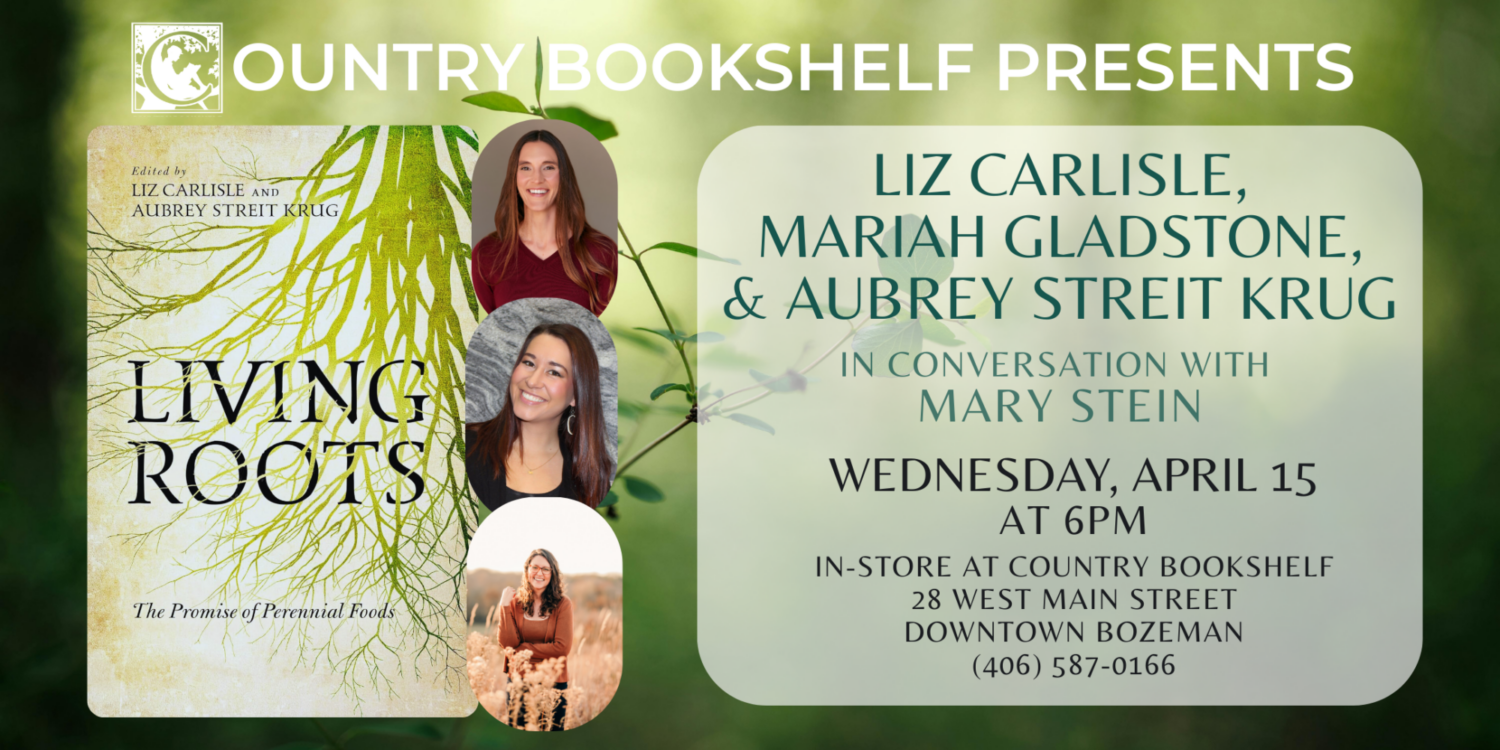 Join us for a celebration of perennial foods and their deep roots in western Montana! Bozeman food systems leader Mary Stein will moderate a conversation with Liz Carlisle, Aubrey Streit Krug, and Mariah Gladstone about the new book Living Roots: The Promise of Perennial Foods. Following the conversation, Mariah Gladstone will present a special tasting of perennial appetizers!