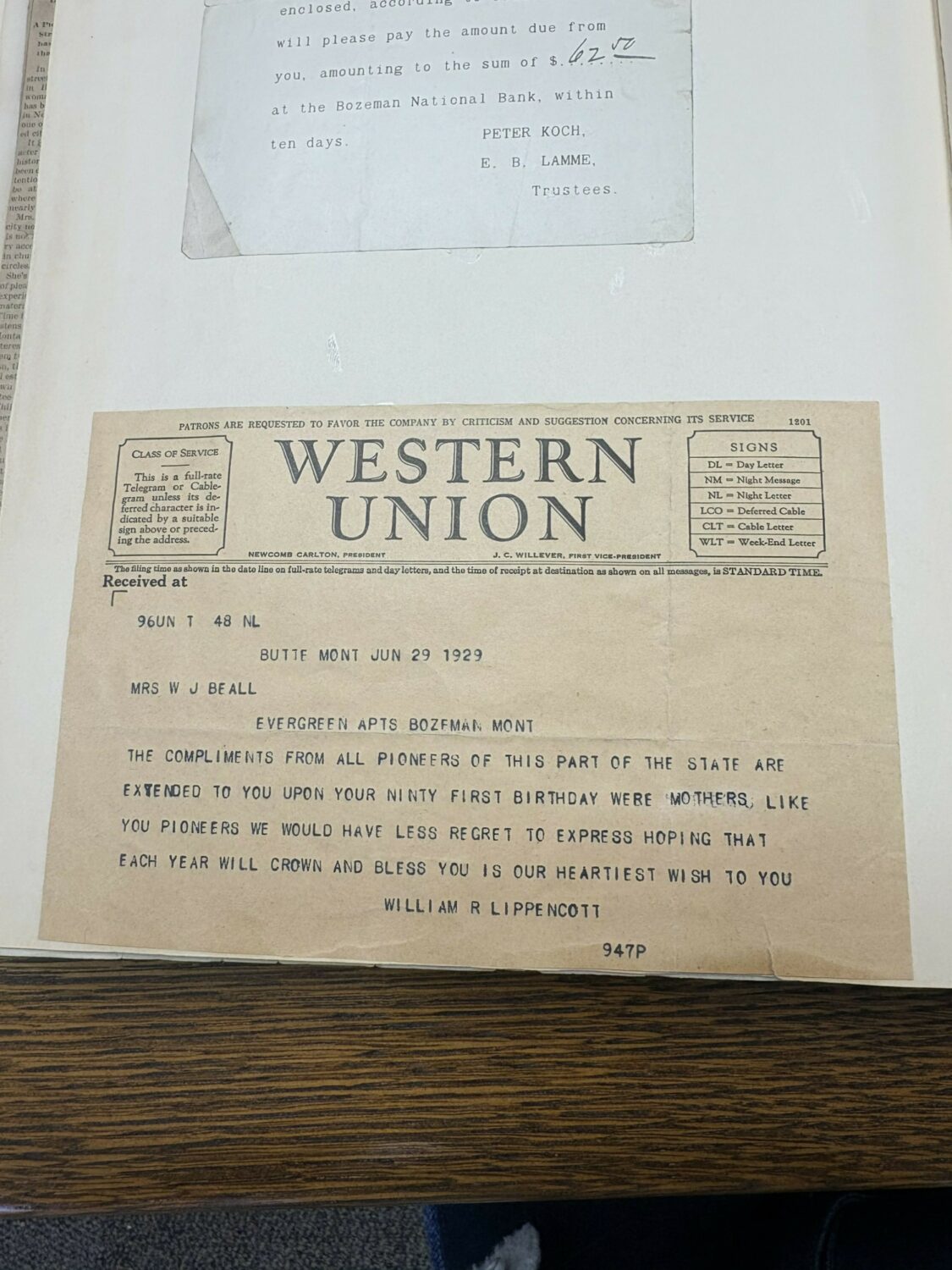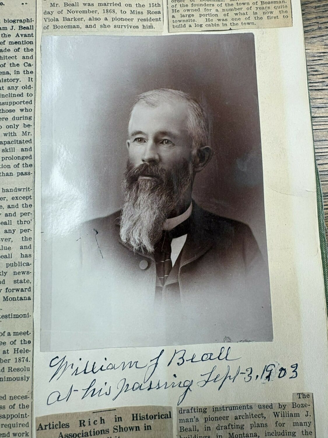 Rosa was determined to keep Bozeman’s pioneering and early history alive, keeping a detailed scrapbook throughout her life containing photographs, newspaper clippings and personal memorabilia, all pertaining to the Beall’s, history of Bozeman and of the beginnings of Gallatin County.