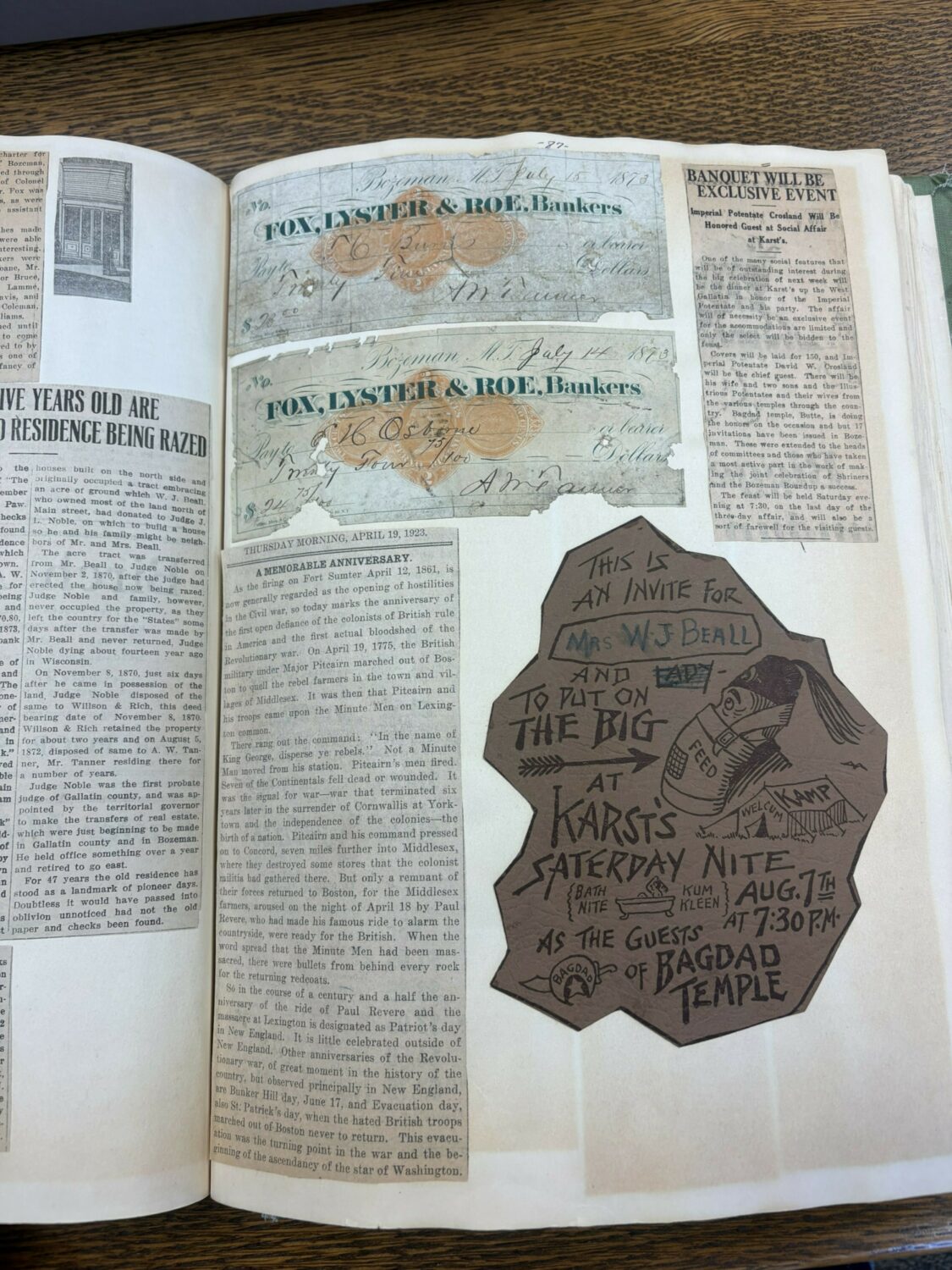 Thank you to the wonderful people at the Archives & Special Collections - MSU Library for providing access to Rosa's scrapbook and preserving incredible log of our town's history!